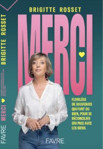 Ce récit dans lequel on rit, on vibre et on s’émeut, c’est aussi une façon pour Brigitte Rosset de dire MERCI : pour les délices au jambon, le nom des fleurs, les conversations et les conversions, la pâte à modeler, le rafting au Zimbabwe, les poulets rôtis, les cousins, les robes en laine, le buffet de la gare, l’opéra, le ski, les cacahuètes, les couteaux à poisson, la jambe cassée, les courses de chevaux, les dragées, les chaussures trop grandes, la pâte à modeler, les festins, la médaille de bronze, les pantalons rayés, les nœuds dans le bois, les messages sur le répondeur, les retrouvailles, les chroniques du vieil homme, les cervelas grillés, les confitures, la rythmique, le piano, la forêt noire sans cerises…